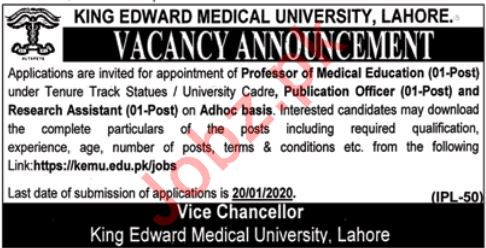 Latest King Edward Medical University Teaching Posts Lahore 2025
