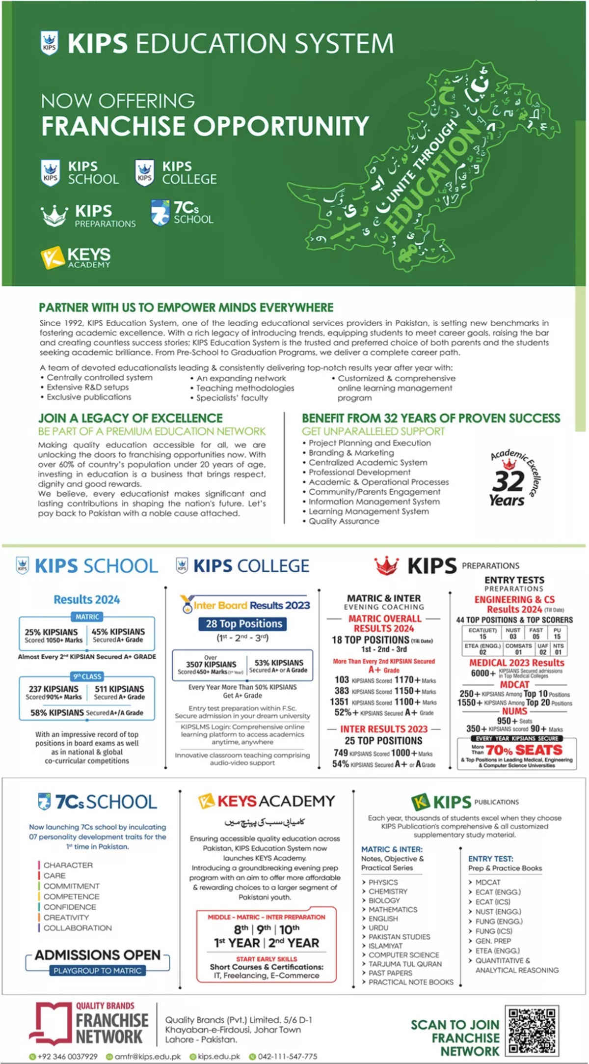 KIPS Education System admissions 2024 for Pre Medical, Pre Engineering, Computer Sciences has been announced. Eligible students can apply for academic admissions 2024 in KIPS Education System Lahore Punjab Pakistan for Teaching College. Eligible students for fulfilling criteria for admissions in Intermediate and Matric can enroll as per Private admission policy 2024 till closing date 20 September 2024. Read newspaper ad for exact details.