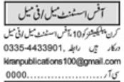 Kiran Publication Lahore Jobs 2024 For Office Assistant