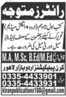 Kiran Publications Jobs 2021 For Writers in Lahore