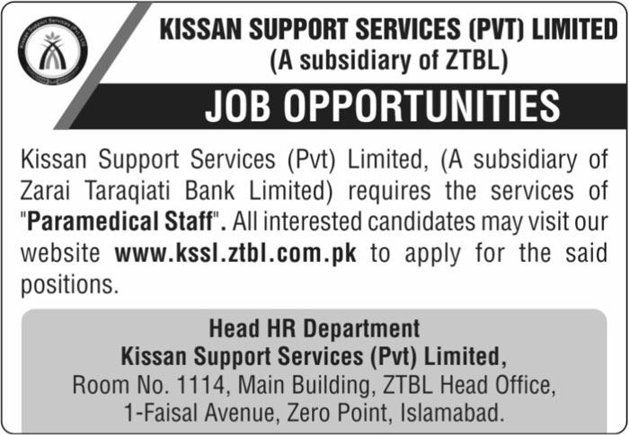 Latest Kissan Support Services Pvt Limited KSSL Medical Posts Islamabad 2025