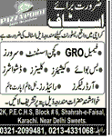 Apply as per details in job advertisement. Login to view further details of how to apply via https://www.jobz.pk online.