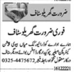 Private Firm Karachi, karachi Sindh Pakistan invites applications from eligible candidates for the post of chowkidar, driver, other staff, office boy, cook, kitchen helper and security guard as per advertisement of December 16, 2022 published in daily Dunya Newspaper. Middle and Primary etc. educational qualification will be preferred.
