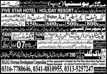 Pak Gulf Tec Ni Test & Training Center Europe, europe Europe invites applications from eligible candidates for the post of carpenter, kitchen helper, assistant waiter, welder, waiter, cook, polywood machine operator and chef as per advertisement of July 5, 2023 published in daily Express Newspaper. Candidates with DAE, Bachelor, Intermediate and Matric etc. educational background will be preferred.