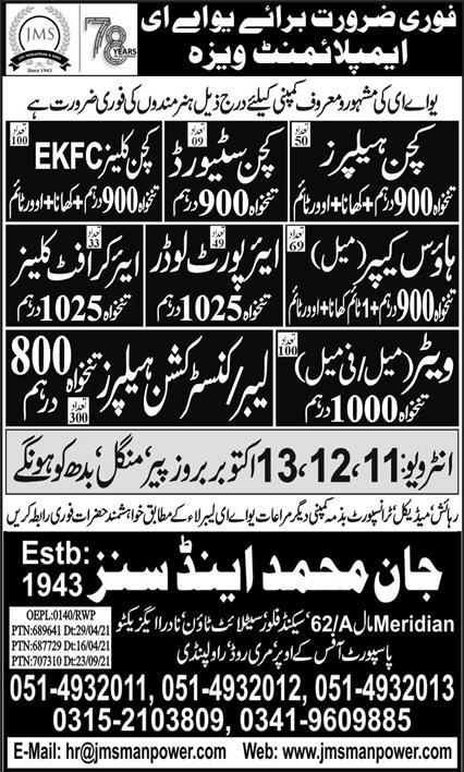 Vacancies in Jan Muhammad & Sons Advertisement October 2021