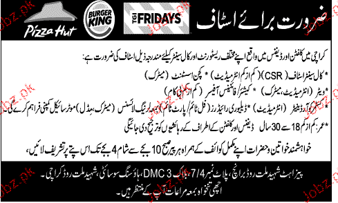 Apply as per details in job advertisement. Login to view further details of how to apply via https://www.jobz.pk online.