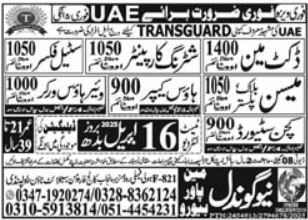 MS New Gondal Manpower Bureau OEP jobs advertisement dated about 10 April 2025 in daily Mashriq Newspaper invites application for the vacant post of shuttering carpenter, steel fixer, plaster mason, duct man, warehouse worker, mason, house keeper, block mason and kitchen steward in Abu Dhabi, sharjah UAE. Candidates with Matric, Middle and Intermediate etc. educational background will be preferred.
