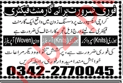 Knits Supervisor, Knits Operators & Woven Operators Jobs