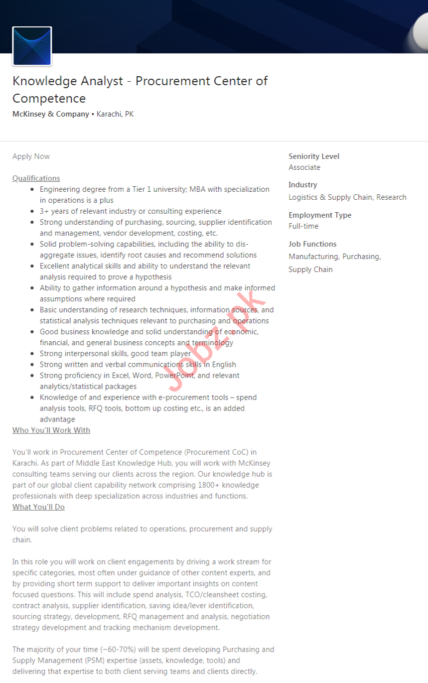 Latest McKinsey & Company IT Posts Karachi 2025