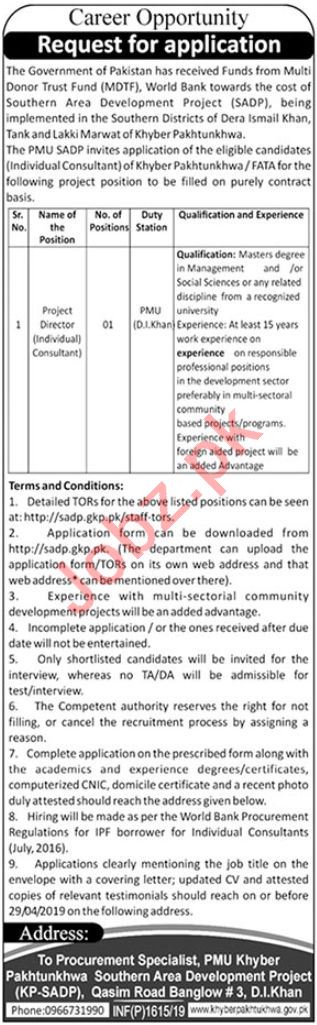 Vacancies in KP Southern Area Development Project Advertisement April 2019