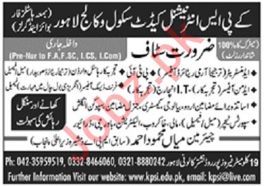 KPS International Cadet School & College invites applications from highly qualified and well educated individuals for the positions of Administrator, Physical Training Instructor, PTI, Admin Officer, IT Incharge, Front Desk Officer, Urdu Teacher, Biology Teacher, Chemistry Teacher, General Science Teacher, Spoken English Teacher, Sports Teacher, Mali, Sweeper, Electrician, Cook and Driver in Lahore.