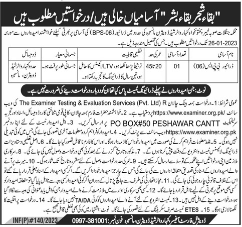 Kunhar Water Shed Division, Forest Department Mansehra, mansehra Khyber Pakhtunkhwa KPK Pakistan invites applications from eligible candidates for the post of ltv driver and driver as per advertisement of January 12, 2023 published in daily Aaj Newspaper. Persons with Middle and Primary etc. education can apply.