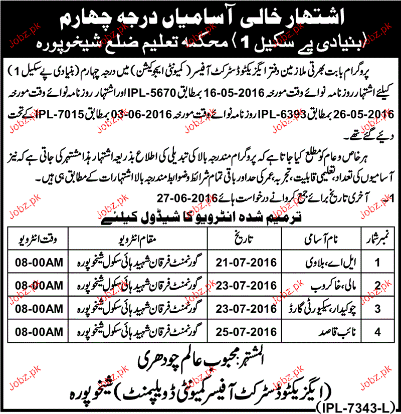Todays New Jobs in Sheikhupura