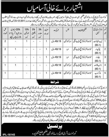 Lab Attendant, Watchman & Labor Jobs In Govt Degree College
