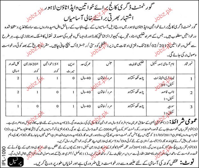 Lab Attendants And Naib Qasid Job In Government Degree Colle