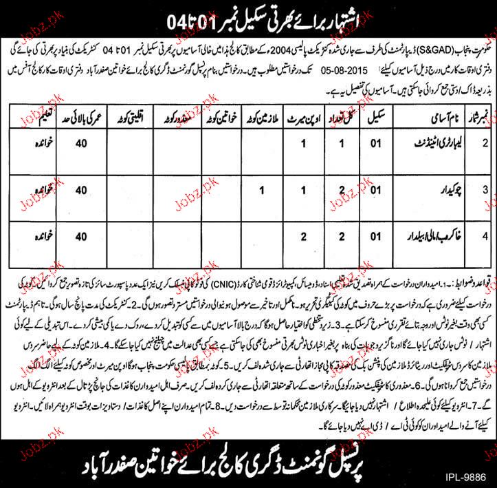 Lab Attendants, Chawkidars and Sweepers Job Opportunity