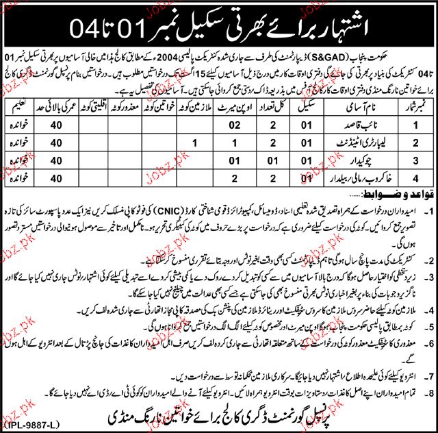 Lab Attendants, Naib Qasid, Chawkidars Job Opportunity