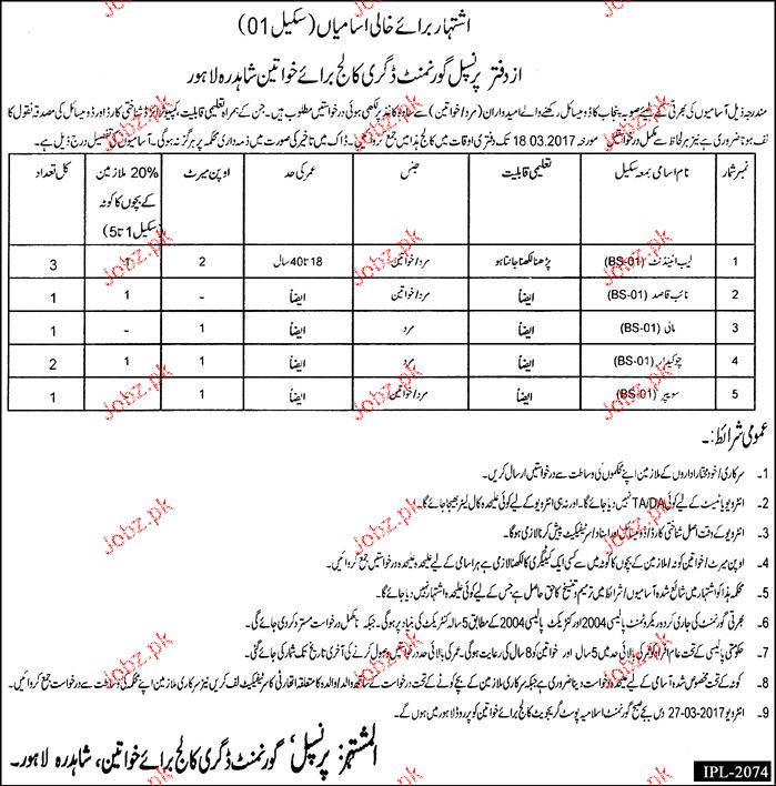 Lab Attendants, Naib Qasid, Malis and Sweepers Wanted