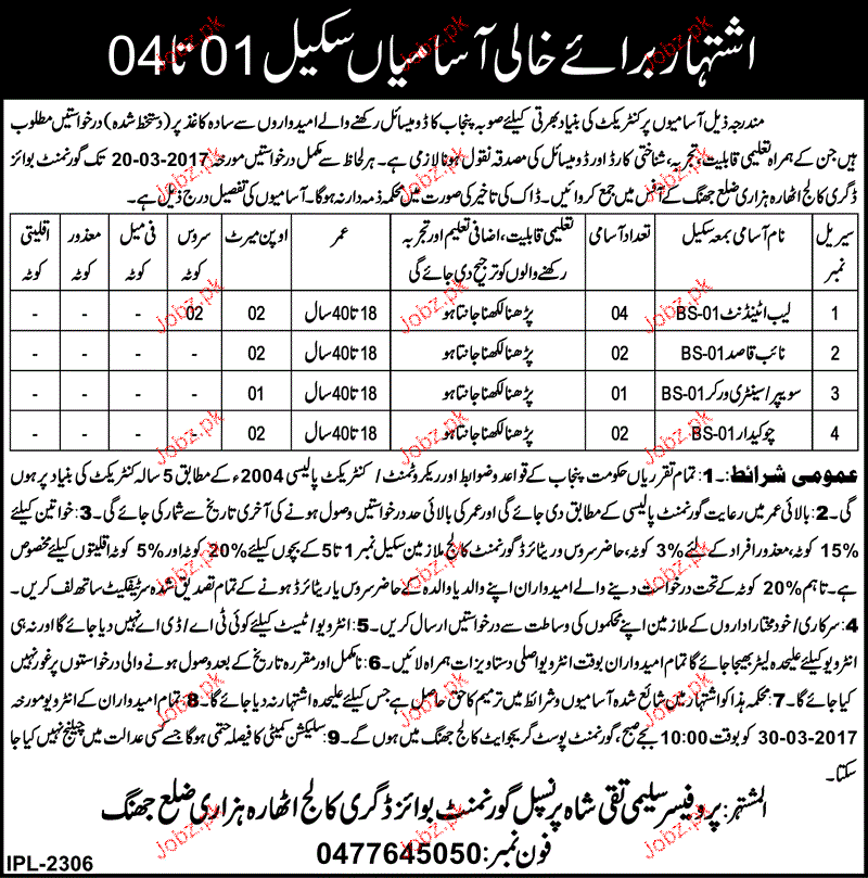 Lab Attendants, Naib Qasid, Sweepers And Chawkidars Wanted