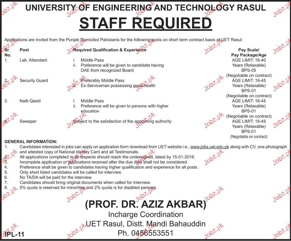 Lab Attendants, Security Guards, Naib Qasid Job Opportunity