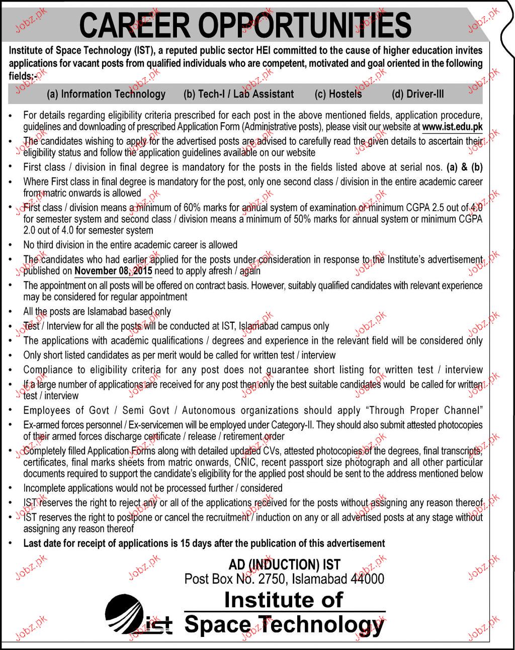 Lab Staff, Hostel Staff, Drivers And IT Staff Job In IST