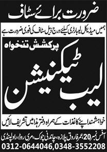 Medical Laboratory is looking for candidates for following posts as per job advertisement published in daily Express Newspaper of March 4, 2025 for location Chandni Chowk Rawalpindi, rawalpindi Punjab Pakistan: