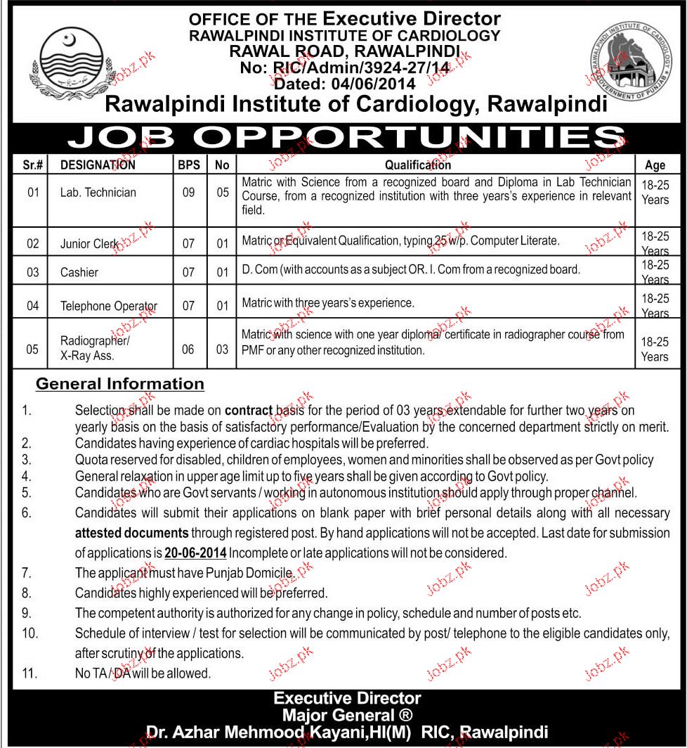 Lab Technicians, Junior Clerks, Cashiers Job Rawalpindi Inst