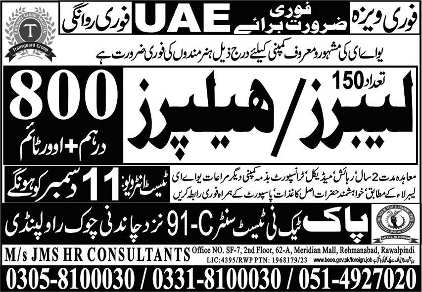 Vacant posts including labor and helper are announced in Pak Techni Test Center Abu Dhabi, sharjah UAE as per 9 December 2023 advertisement in daily Express Newspaper. Educational qualifications required Matric and Middle etc.
