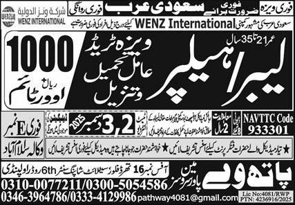 Latest Overseas jobs in Pathway Manpower Services in Labor and others can be applied till 3 December 2025 or as per closing date in newspaper ad. Read complete ad online to know how to apply on latest Pathway Manpower Services job opportunities. Salary varies from 75000.