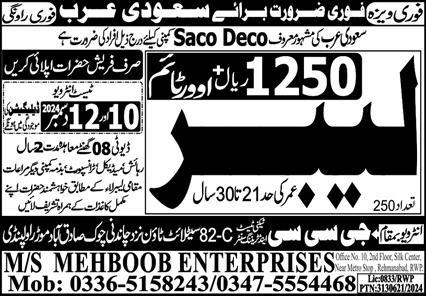 GCC Techni Test & Training Center is looking for candidates for following posts as per job advertisement published in daily Express Newspaper of December 7, 2024 for location Dammam, tabuk Saudi Arabia:
