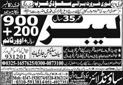 Sound Lines Recruiting Promotion is looking for candidates for following posts as per job advertisement published in daily Express Newspaper of November 21, 2025 for location Jeddah, taif Saudi Arabia:
