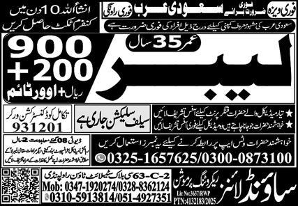 Sound Lines Recruiting Promotion is looking for candidates for following posts as per job advertisement published in daily Express Newspaper of December 10, 2025 for location Jeddah, madina Saudi Arabia: