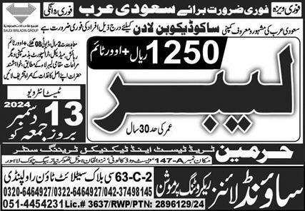 Harmain Trade Test & Technical Training Center latest Overseas Labor jobs and others can be applied till 13 December 2024 or as per closing date in newspaper ad. Read complete ad online to know how to apply on latest Harmain Trade Test & Technical Training Center job opportunities. Salary varies from 92000. Earn extra money with overtime. Employer provides medical, accommodation and transport facility.