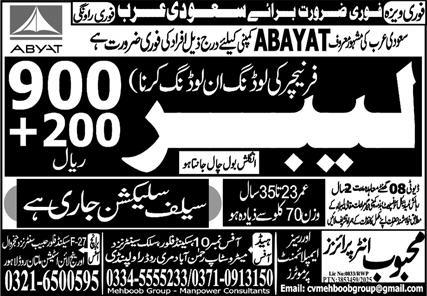 Latest Mehboob Enterprises Overseas Employment Promoters Labor Posts Jeddah 2025