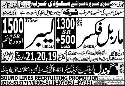 Gondal Trade Test & Training Center is looking for candidates for following posts as per job advertisement published in daily Express Newspaper of March 18, 2022 for location Makkah, makkah Saudi Arabia: