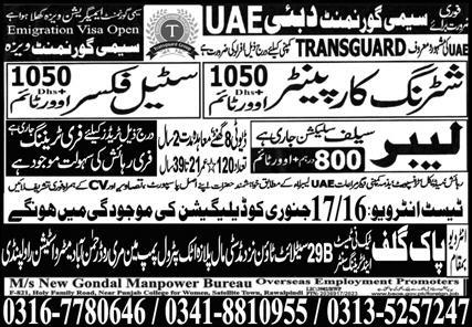 Pak Gulf Technical Training Center invites applications for job positions advertised in daily Express dated 13 January 2024 for following vacancies in Abu Dhabi, dubai UAE.