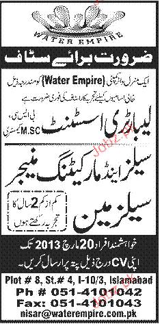 Laboratory Assistant, Sale & Marketing Manager Wanted