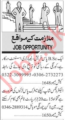Laboratory Assistant Shop Worker Jobs in Karachi