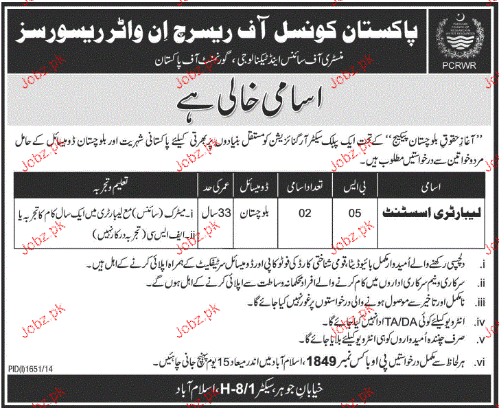 Apply as per details in job advertisement. Login to view further details of how to apply via https://www.jobz.pk online.