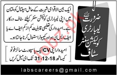 Laboratory Collection Centre Staff Jobs 2019 in Multan