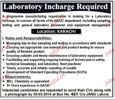 Apply as per details in job advertisement. Login to view further details of how to apply via https://www.jobz.pk online.