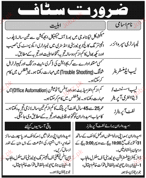 Todays New Jobs in Lahore