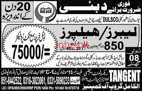 Latest Tangent Recruitment Agency Overseas Employment Promoters Labor Posts Dubai 2025