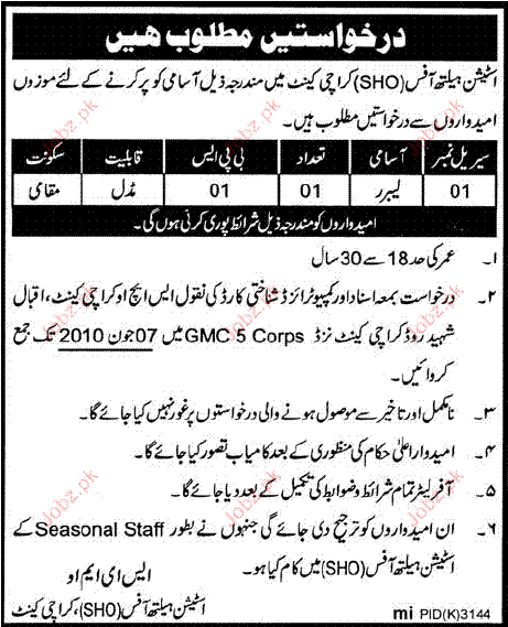 Apply as per details in job advertisement. Login to view further details of how to apply via https://www.jobz.pk online.