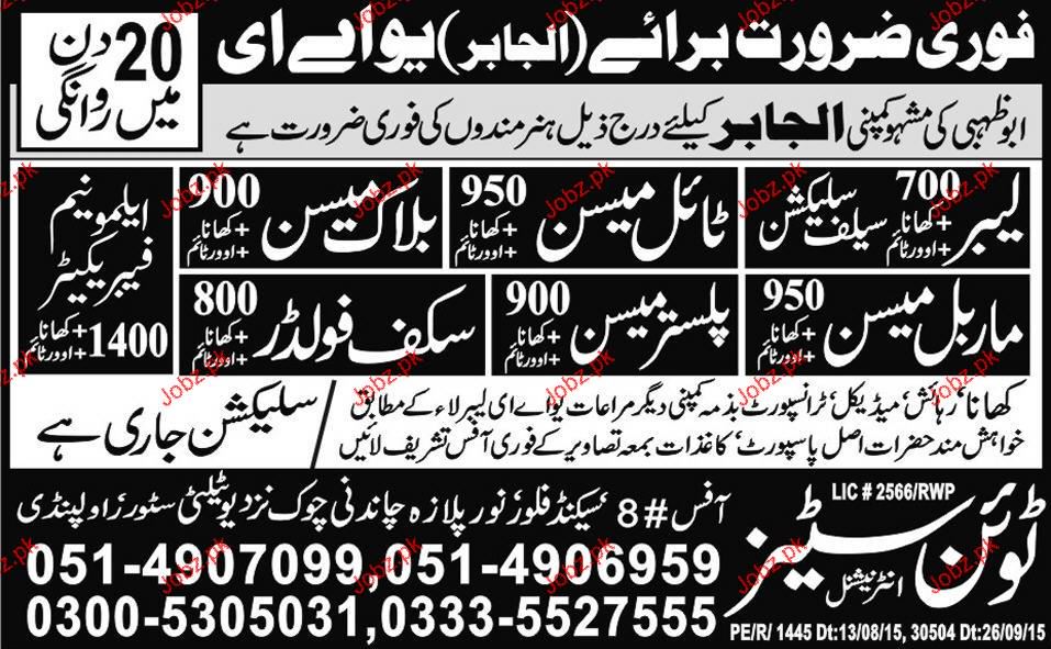 Labors, Block Mason, Scaffolders Job Opportunity