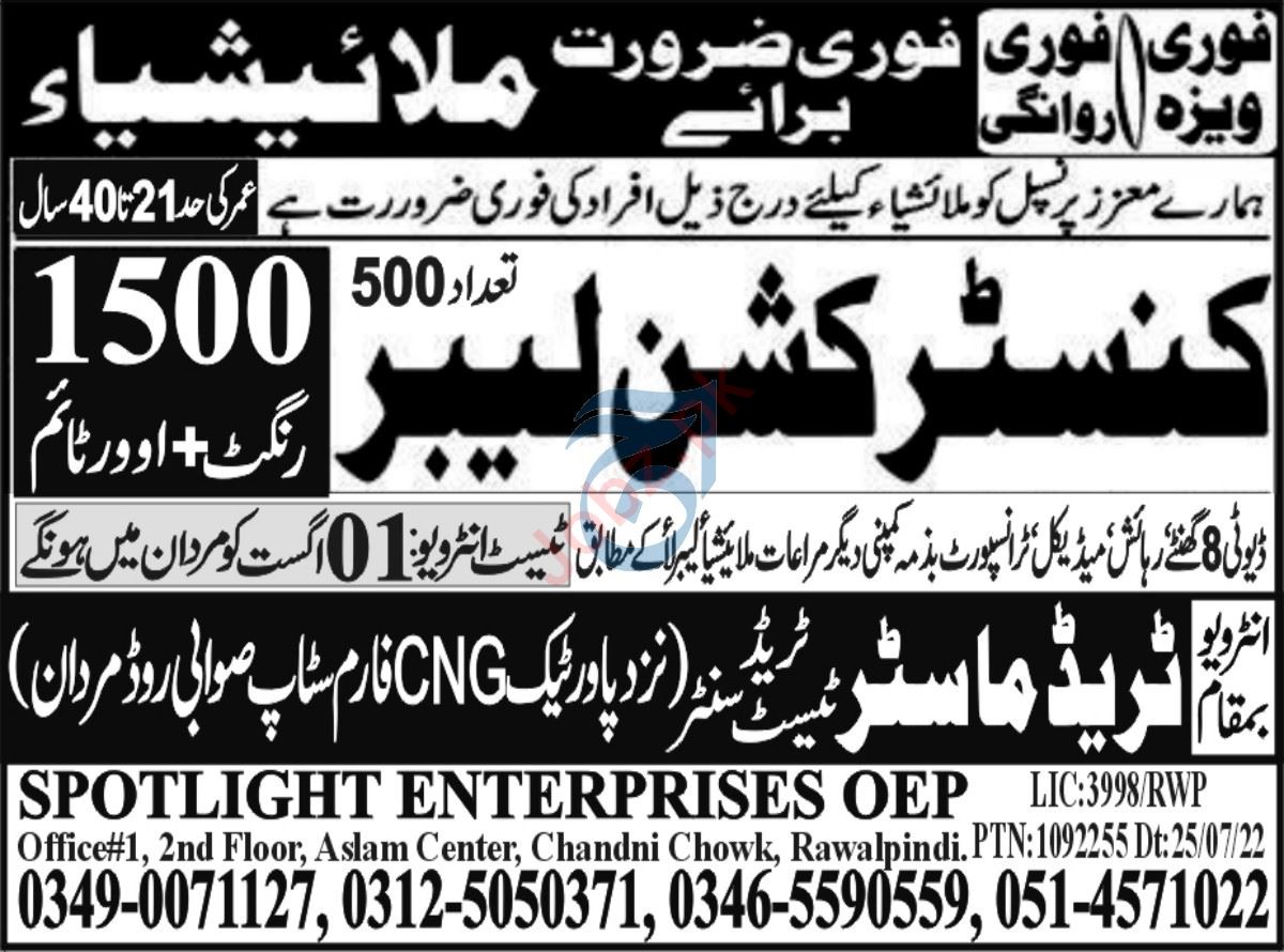 Spotlight Enterprises is looking for candidates for following posts as per job advertisement published in daily Aaj Newspaper of July 29, 2022 for location Rawalpindi, rawalpindi Punjab Pakistan: