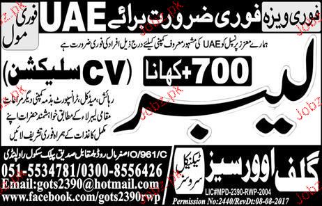Labors are required in UAE Famous Company in UAE. Food, Medical and Residence will be provided by the Company. Ambitious Candidate Send their CV.
