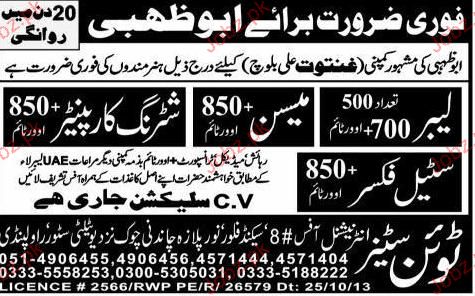 Labors, Mason, Shuttering Carpenters and Steel Fixers are required in Abu Dhabi