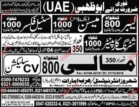 Labors, Mason, Steel Fixers and Shuttering Carpenters Wanted