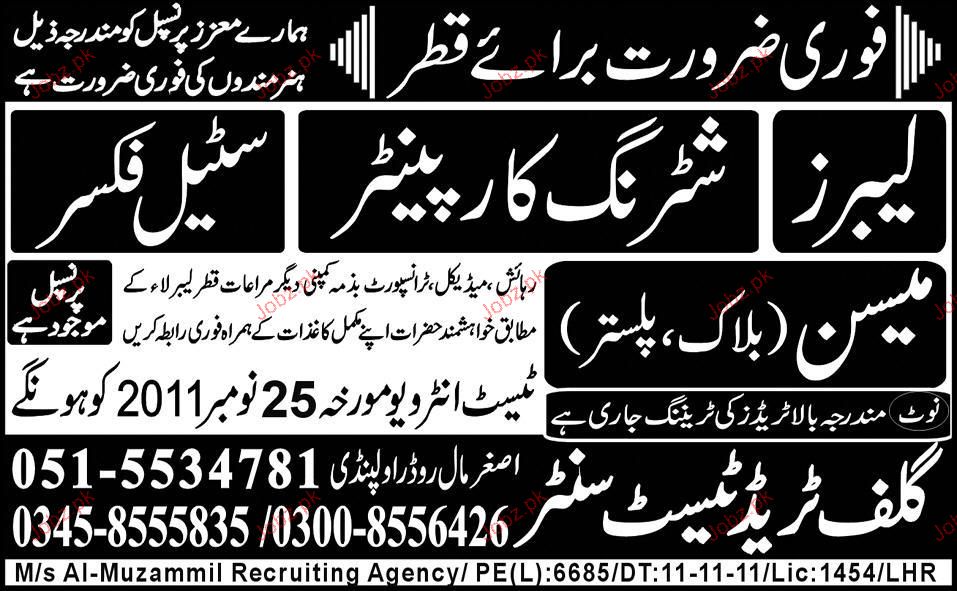 Labors, Shutteering Carpenter, Steel Fixer Job Opportunity